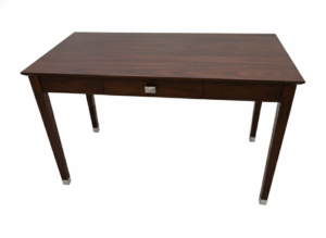 A refined wooden desk blending MDF with wood veneer and solid wood legs, designed for timeless style and durability.