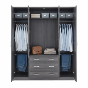 The MilanGlow Wardrobe is part-assembled for easy setup at home and includes adjustable metal hinges to ensure perfect alignment. Crafted from durable particle board with Melamine/PVC/Acrylic doors, it is environmentally friendly and certified CARB II, E0, and E1 for safe use. Measuring Height 1830 × Width 1130 × Depth 518 mm, it fits comfortably into modern bedrooms while providing practical, stylish storage.