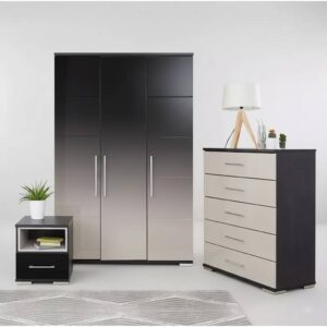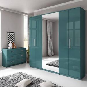 The MilanGlow 2-Door Wardrobe brings sleek, contemporary style to your bedroom. Available in black, white, or grey, its high-gloss doors, mirrored center, and handle-free design create a chic, modern look while offering practical storage with a hanging rail, high shelf, and additional smaller shelves.