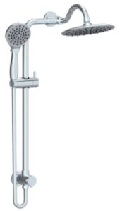 Deep-slope interior helps control water flow toward the slightly off-center rounddrain. This model works well for heavier water loads.